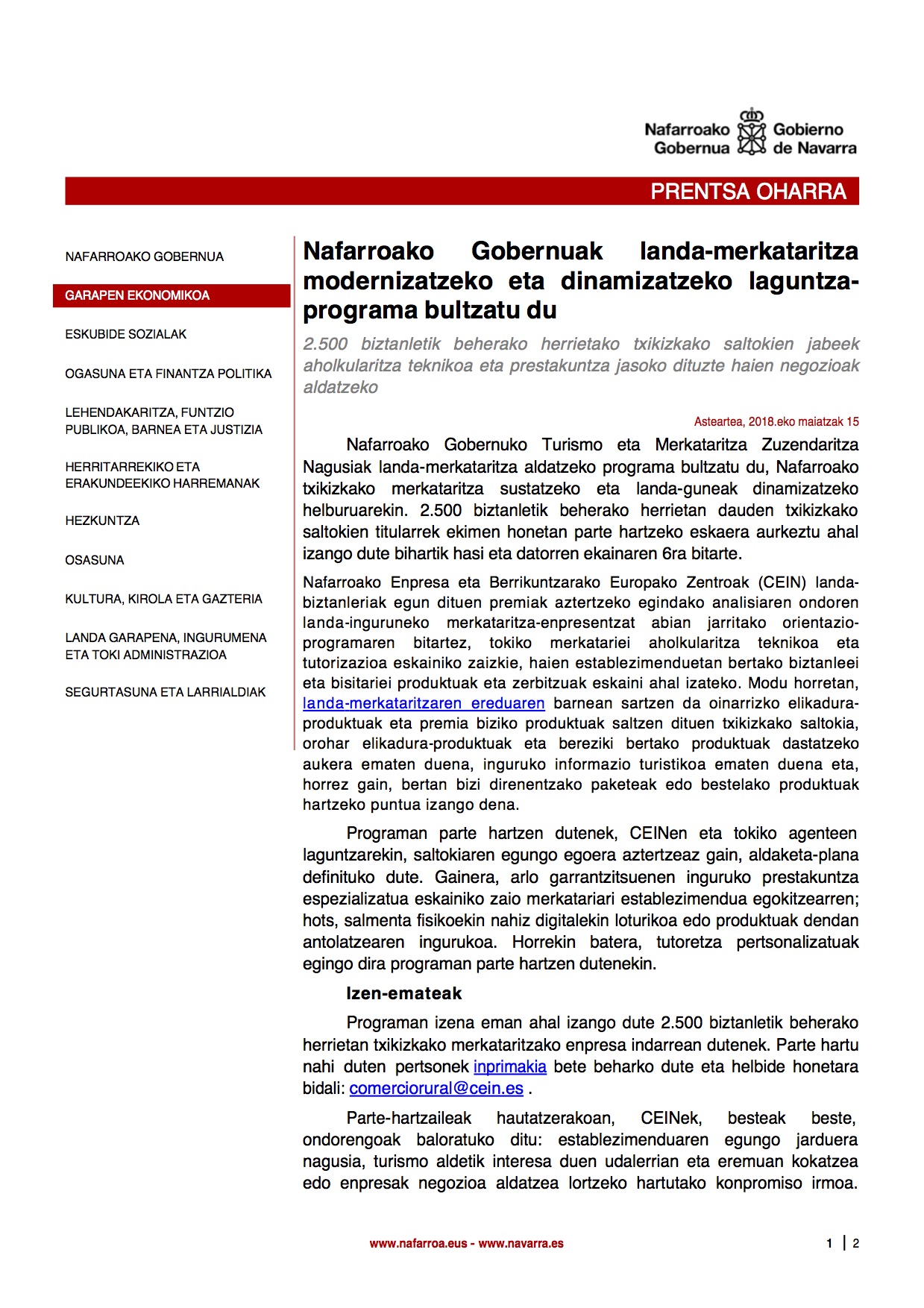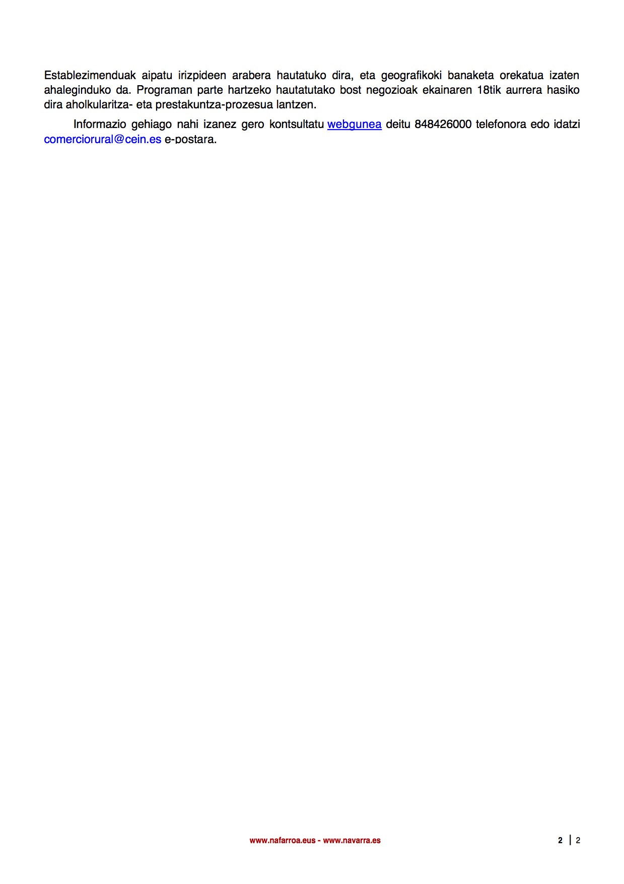 Informazio gehiago nahi izanez gero kontsultatu webgunea deitu 848426000 telefonora edo idatzi comerciorural@cein.es e-postara.
